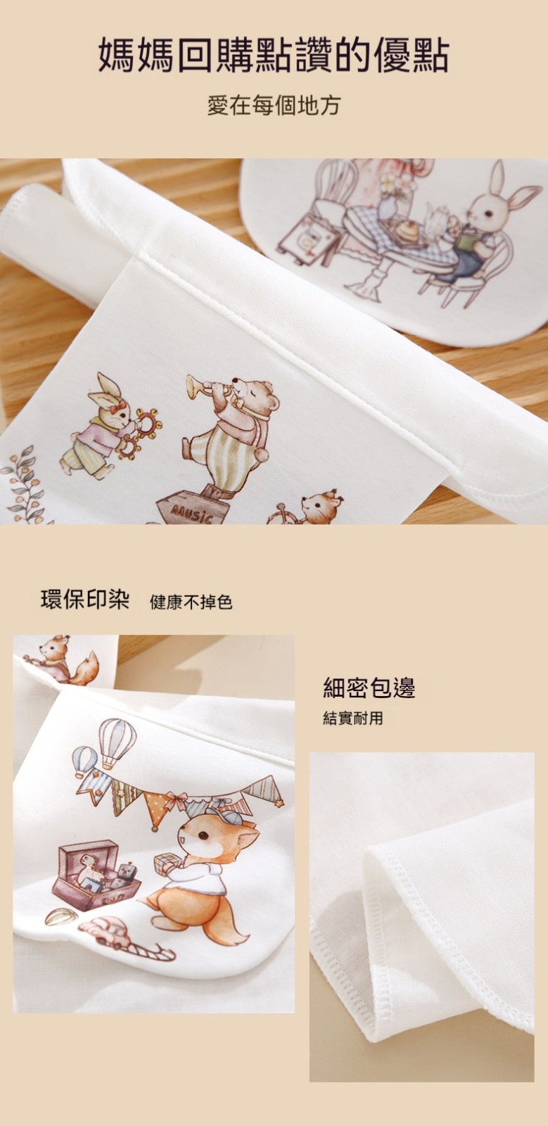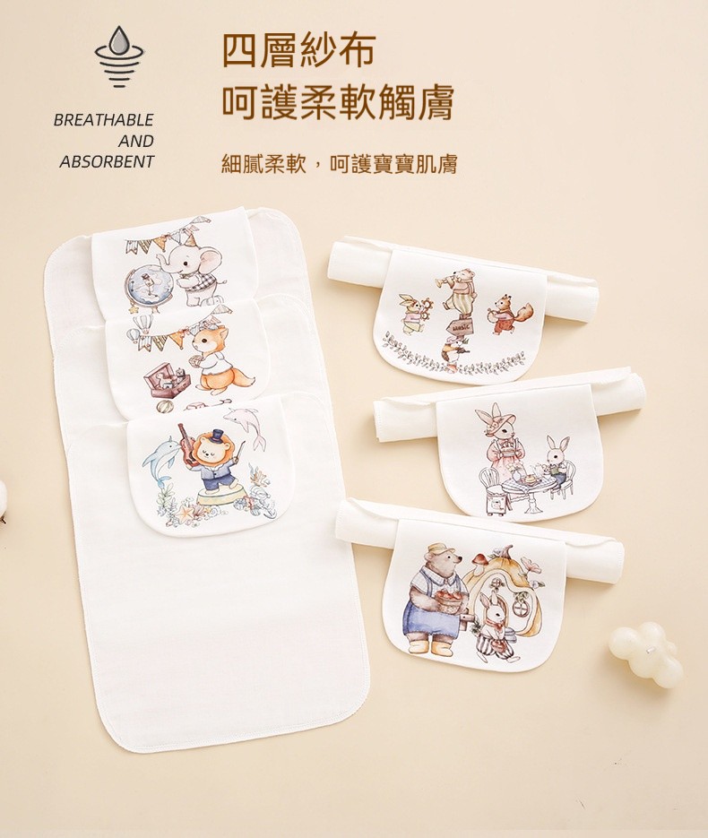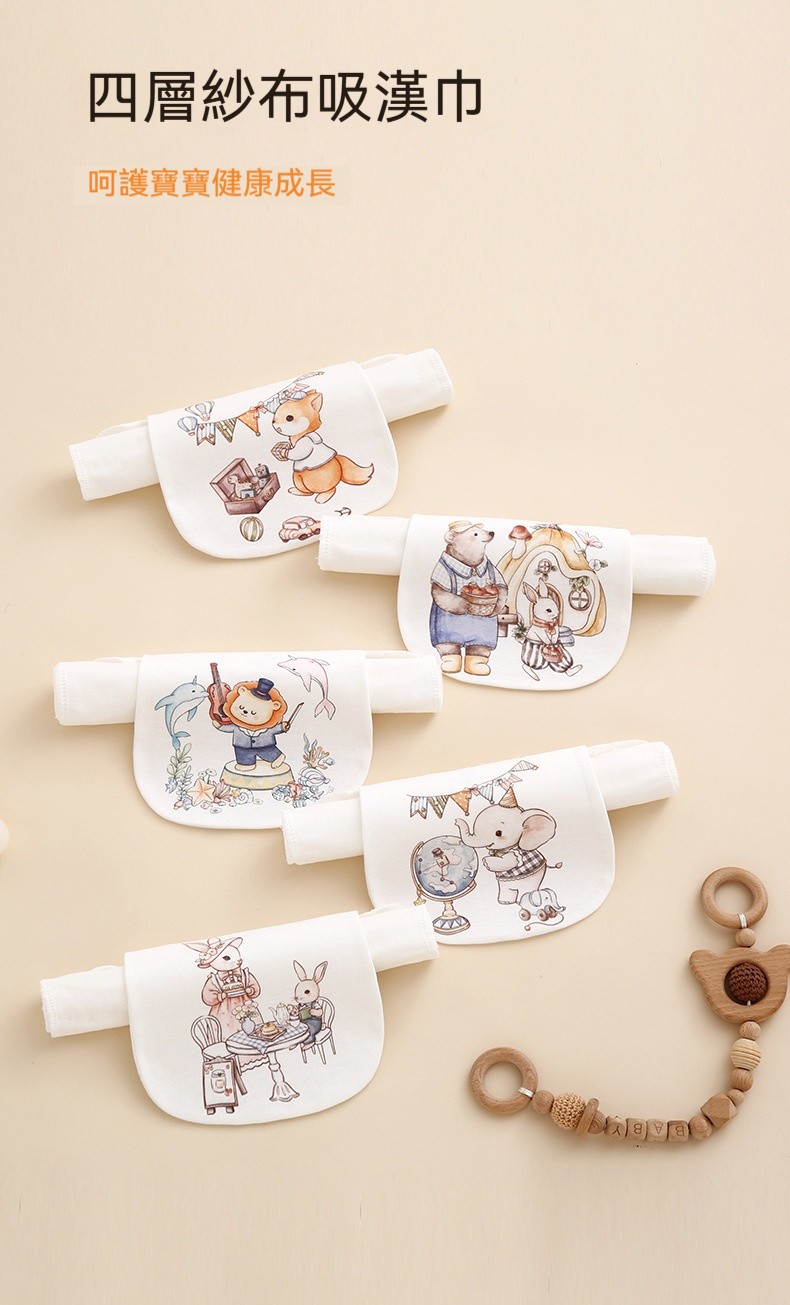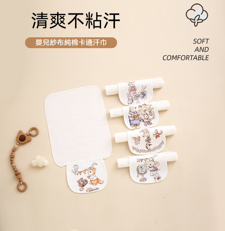 四層紗布純棉卡通汗巾|寶寶出汗不黏背!清爽吸汗不回滲✨ 松鼠/萌象地球儀/甜點小兔,三款可愛圖案可選!
