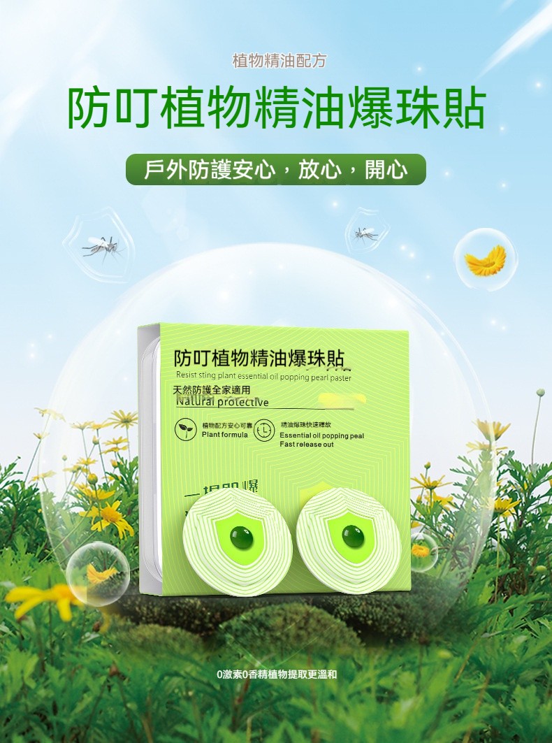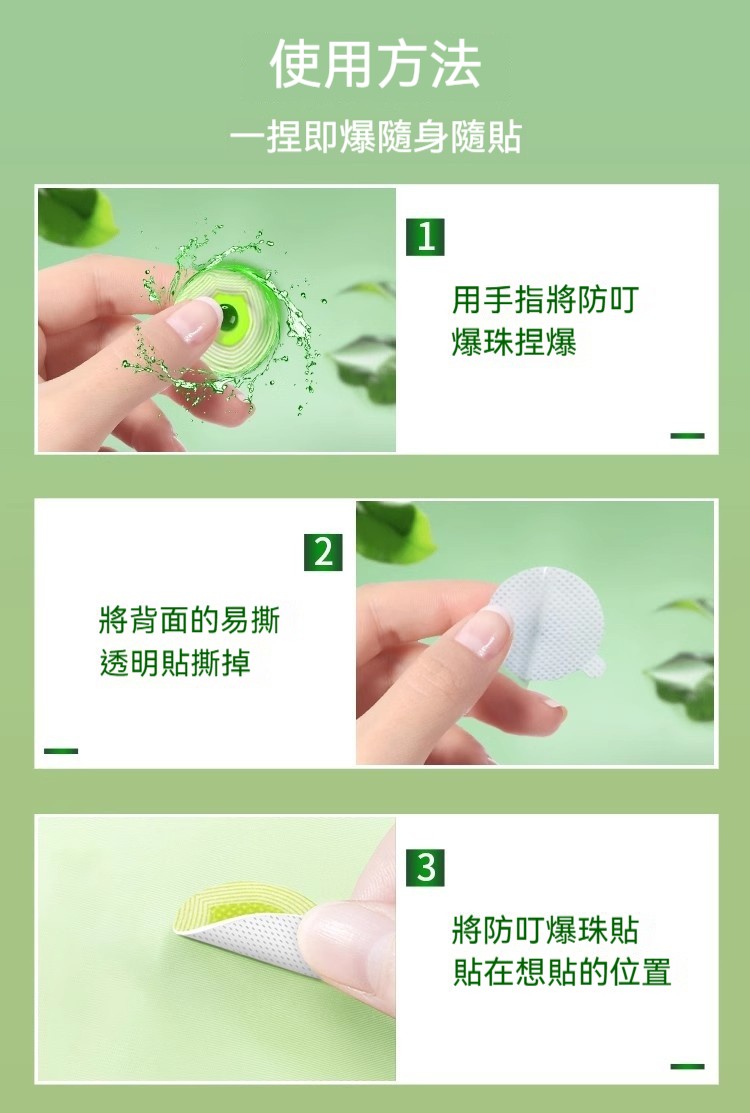 防叮植物精油爆珠貼|一捏即爆,快速釋放防護力✨ 0激素0香精,植物萃取溫和配方,母嬰可用! 貼上48小時長效防護,戶外遊玩超安心!