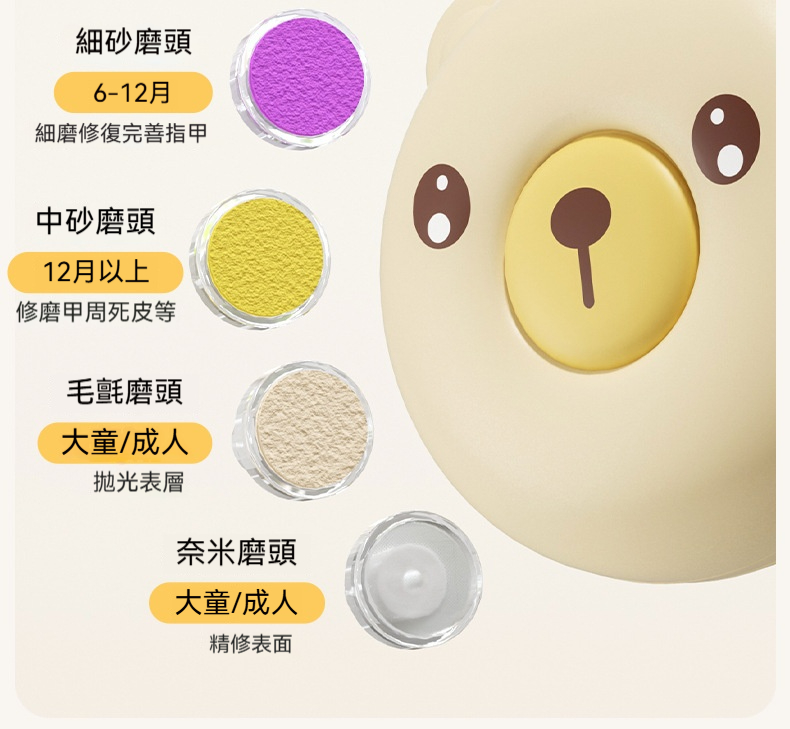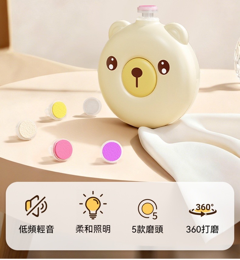 電動磨甲器|5款磨頭,0歲用到長大✨ 碰肉立停不傷手!輕音低震不吵醒寶寶! 夜間照明+兩檔轉速,新手爸媽必備神器!